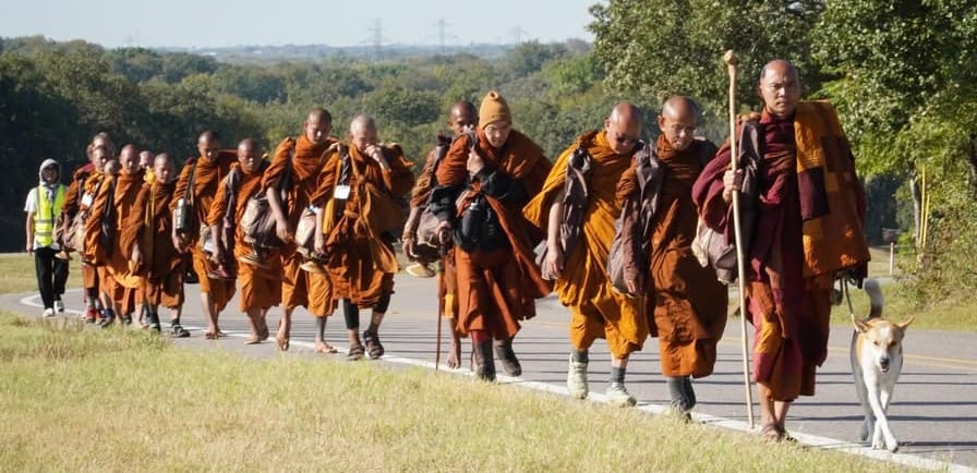 Preamble: The Walk for Peace is a 120-day, 3,700 km journey by Buddhist monks — with loyal dog, Aloka — walking from Fort Worth, Texas, to Washington, D.C. to raise awareness of peace, loving kindness, and compassion across America and the world. The walk began on October 26, 2025 and is expected to end some time in February 2026.
