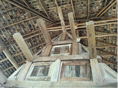 shows how beams are connected to construct the roof, “Lanna style”