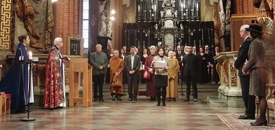 << Representatives of various faith communities in Stockholm Cathedral in the presence of the Royal Family