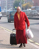 Kelsang Pawo, 62, pictured, has found the town to be "wonderful" and has decided to stay for a few days, while he collects more cash for his charity The Gesar Foundation - a group devoted to helping children all over the world.