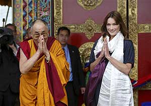 Dalai Lama hosts Bruni-Sarkozy at temple in France