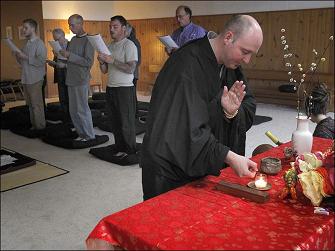 << Jay 'Rinsen' Weik leads a service at the Toledo Zen Center in Holland. The center is changing its name to better reflect its growth as a spiritual home for Buddhism as well as to address confusion about what Zen is. THE BLADE/LORI KING