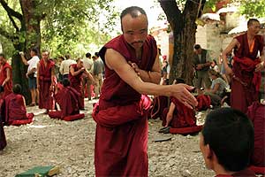 Lobsang Choepel, a 77-year-old monk who heads the government-controlled administration at the Sera monastery, denied there were any restrictions on the monks. "They can go downtown to do shopping and they can go to the market to buy vegetables," he said yesterday. But he didn't explain why so few monks were visible on the streets or in the monastery itself.
